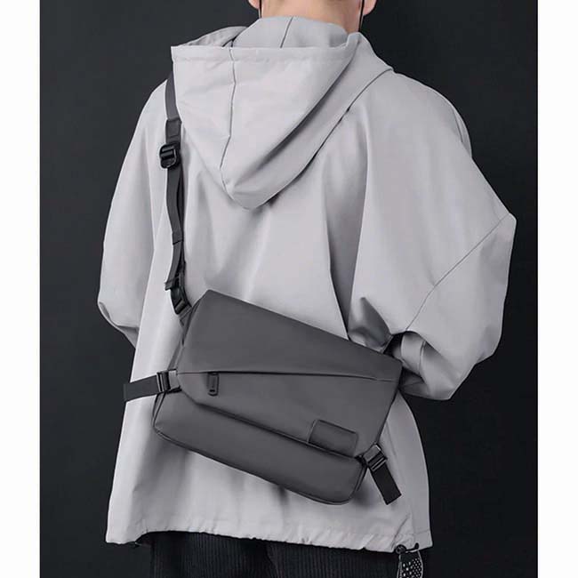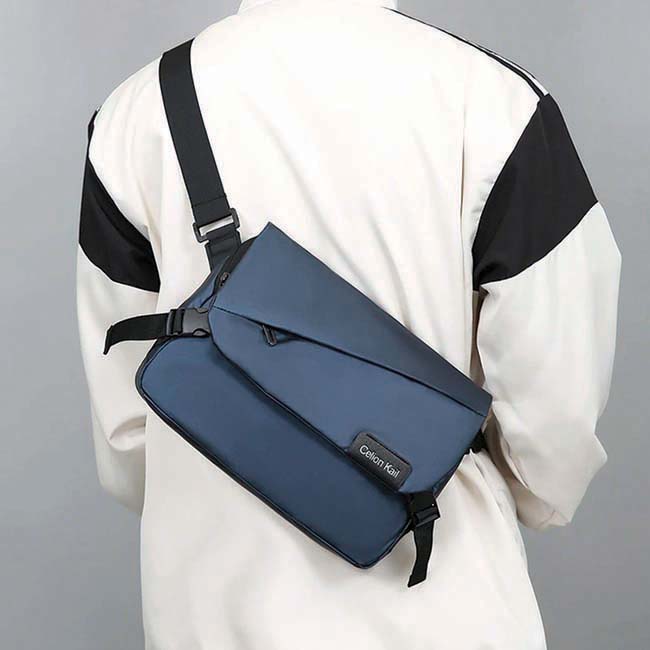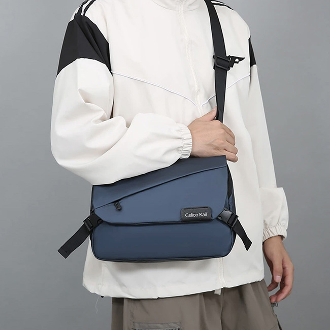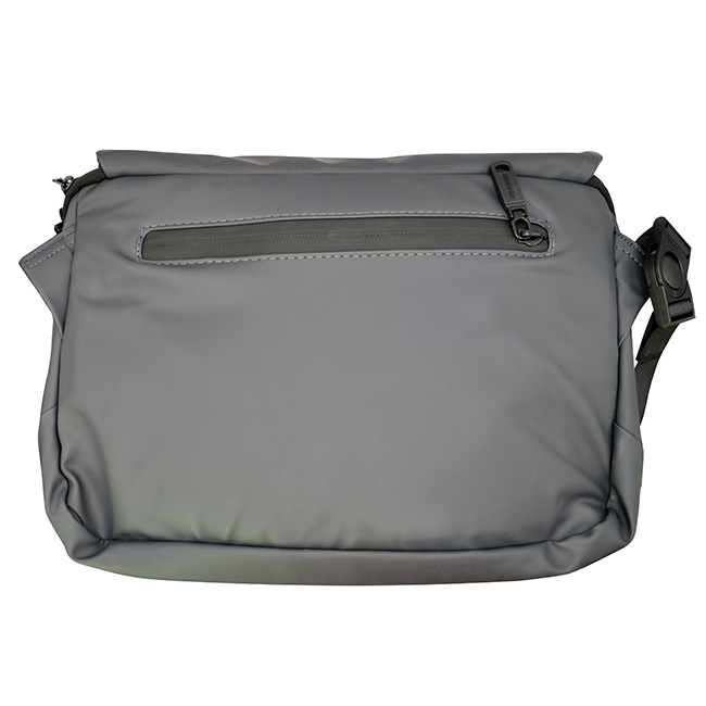 Maletín Falcao l Organizadores interiores y compartimento para tablet. l Bolsillo al frente y posterior con cierre en zipper. l Cierres laterales en hebilla l Impermeable al agua. l Incluye llavero interior. l Etiqueta al frente para personalizar. l Cómoda correa larga ajustable con refuerzo acolchado. l Colores: Azul y Gris