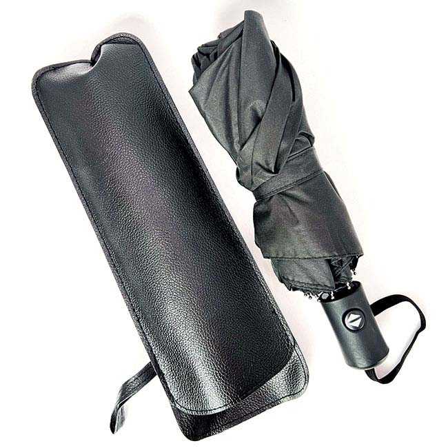 l Elegante estuche de curpiel con correa lateral para sujetar.