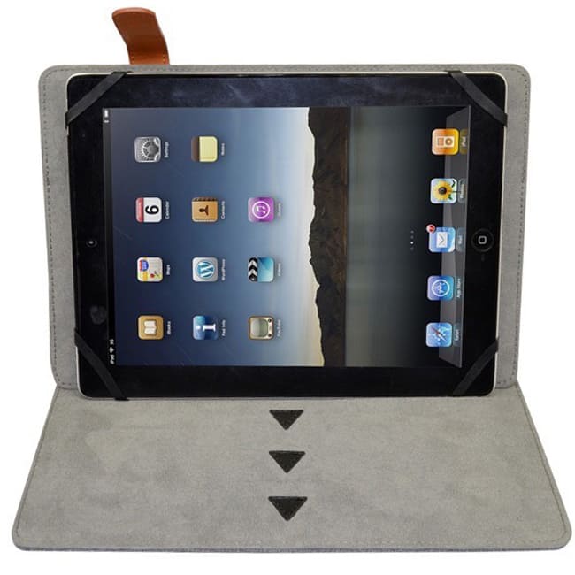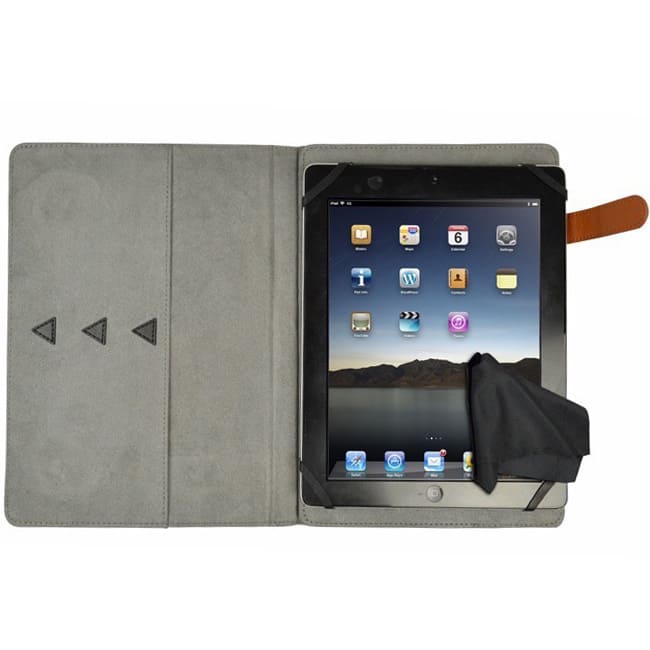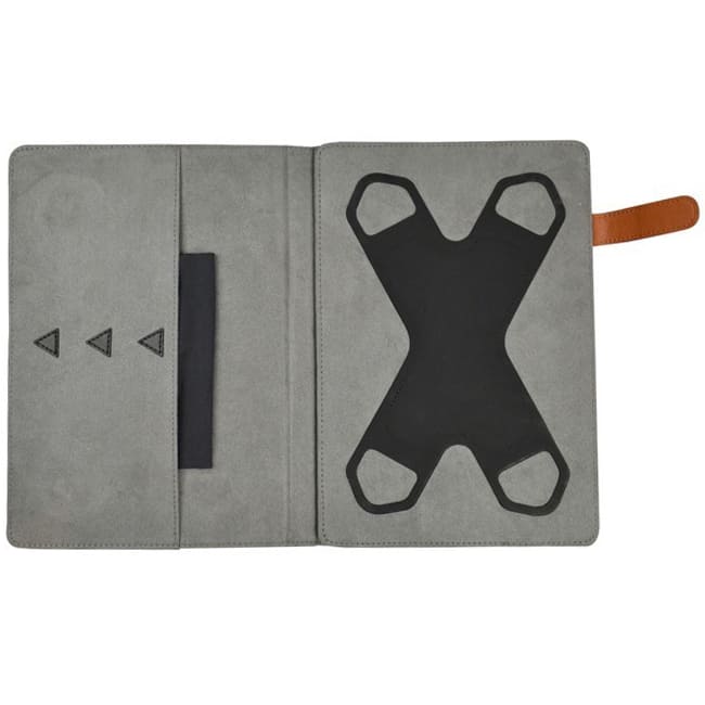 Porta IPad Dubai Funciones: Con cincho para cierre y placa para personalizar.Stand para I-Pad. Incluye tela microfibra.