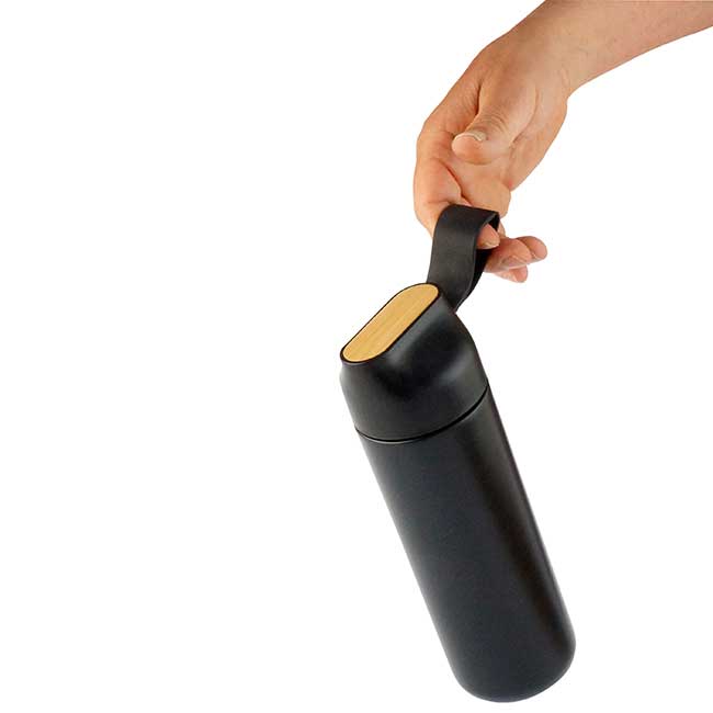 Sistema de doble pared al vacío. Correa de silicón para sujetar.